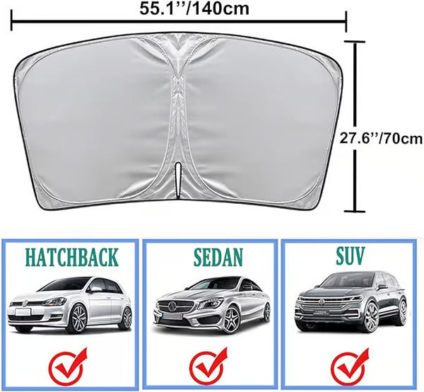 This sunshad sizes fit sports cars or SUVs, SUVs, trucks, etc. Full windshield coverage protects your interior from harmful UV rays