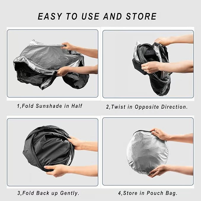 High-quality double-layer sunshade with superb heat absorption effect, reflecting UV rays on the front, absorbing heat and keeping warm on the back, physically cooling 20-30℃. Make it the best choice for your car shade cooling