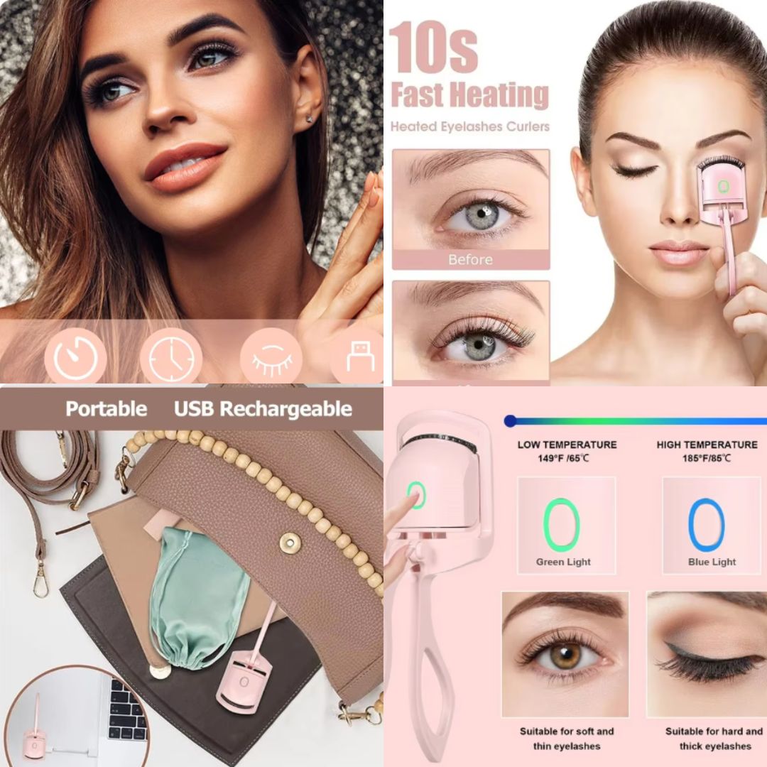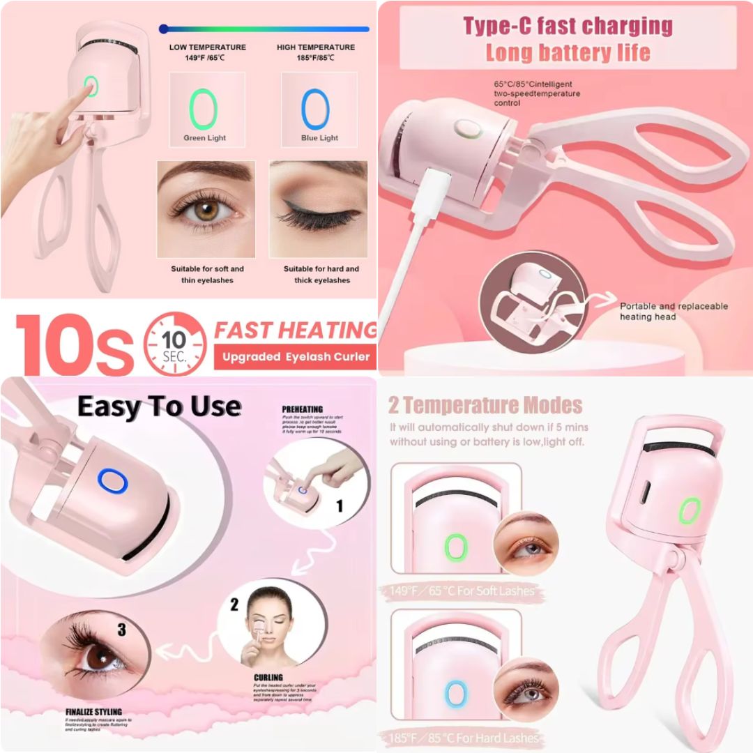 Meet the Glam Heat Lash Curler—your new secret to stunning lashes! This heated electric eyelash curler delivers a long-lasting curl with gentle, even heat, giving your lashes a natural lift without pinching or pulling. Perfect for quick touch-ups or a full glam look, it’s the ultimate tool for effortless, beautiful eyelashes every day.