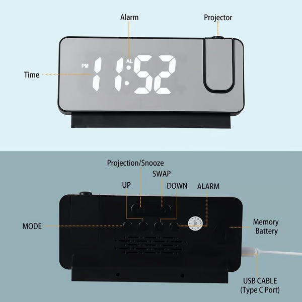 Multi-functional Projection Digital Alarm Clock with Projector, 7'' Larg LED Display, Dual Alarms,USB Charger to Suit Your Needs,A perfect choice for you to be aware of the time in the bedroom, kitchen and office. It is more than a clock. More functions cater to your aspiration for a better life.